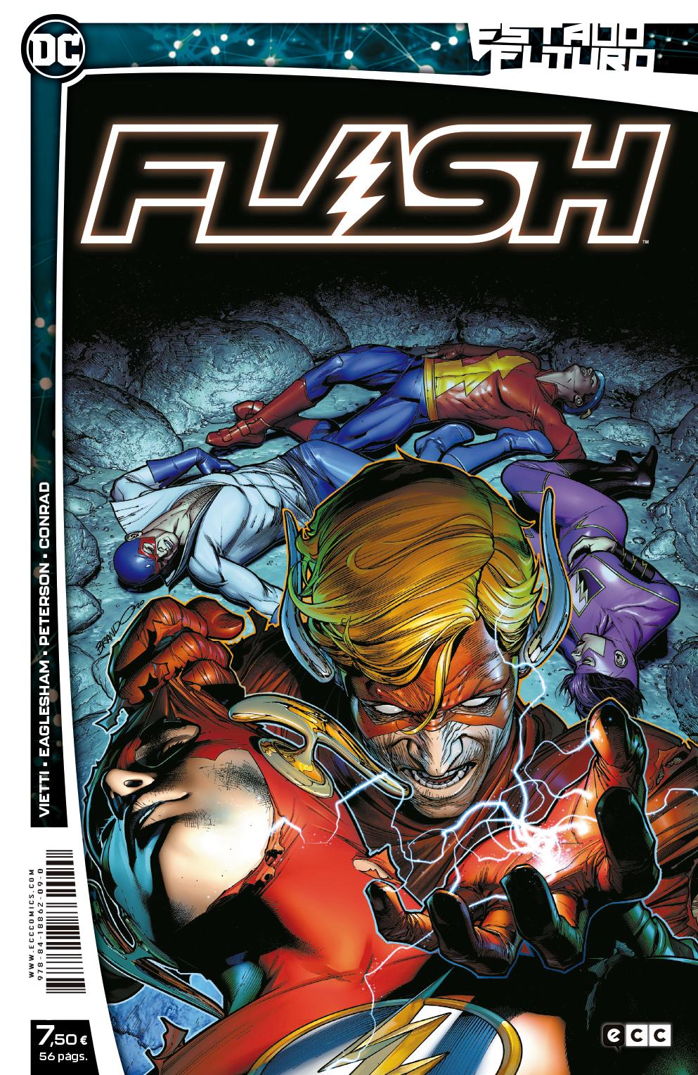 El guionista Brandon Vietti y los dibujantes Dale Eaglesham, Will Conrad y Brandon Peterson nos ofrecen una versión distópica del futuro de Flash y sus principales aliados en una aventura muy especial. Recopila al completo la miniserie original Future State: The Flash.