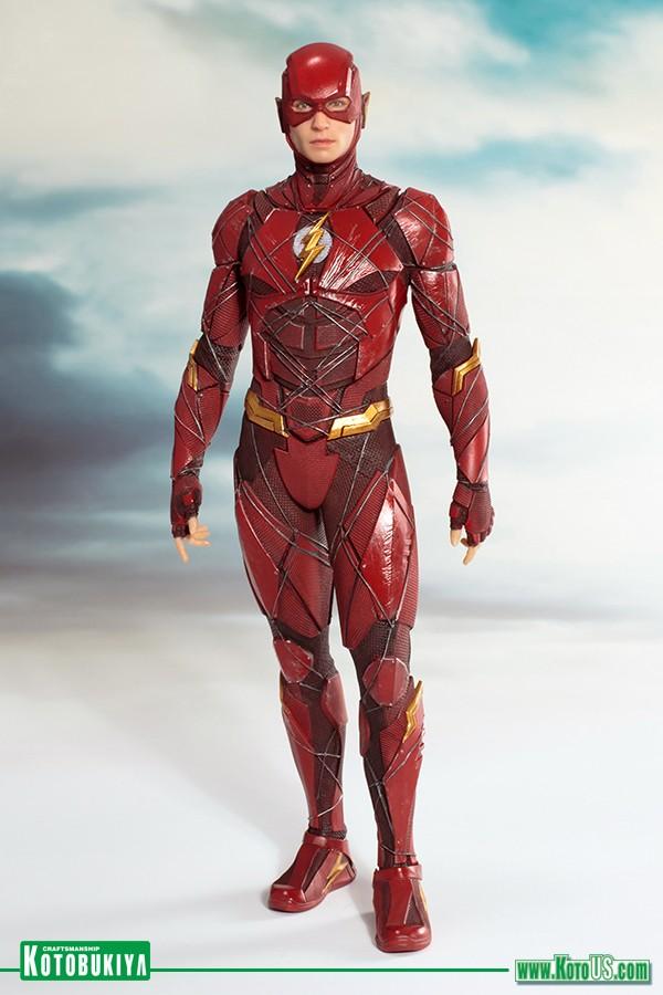 Nueva serie de estatuas a escala 1/10, fabricadas por Kotobukiya. Esta nueva estatua presenta a Flash, de la película "Justice League", interpretado por Ezra Miller. La estatua mide unos 19 cm. y viene con imanes para una mejor sujeción y equilibrio sobre su base.